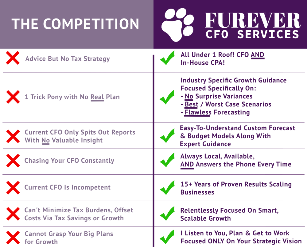 With the Furever Pro CFO Advisory Package, you’ll gain an ally who understands the intricacies of your business and the emotional weight it carries.